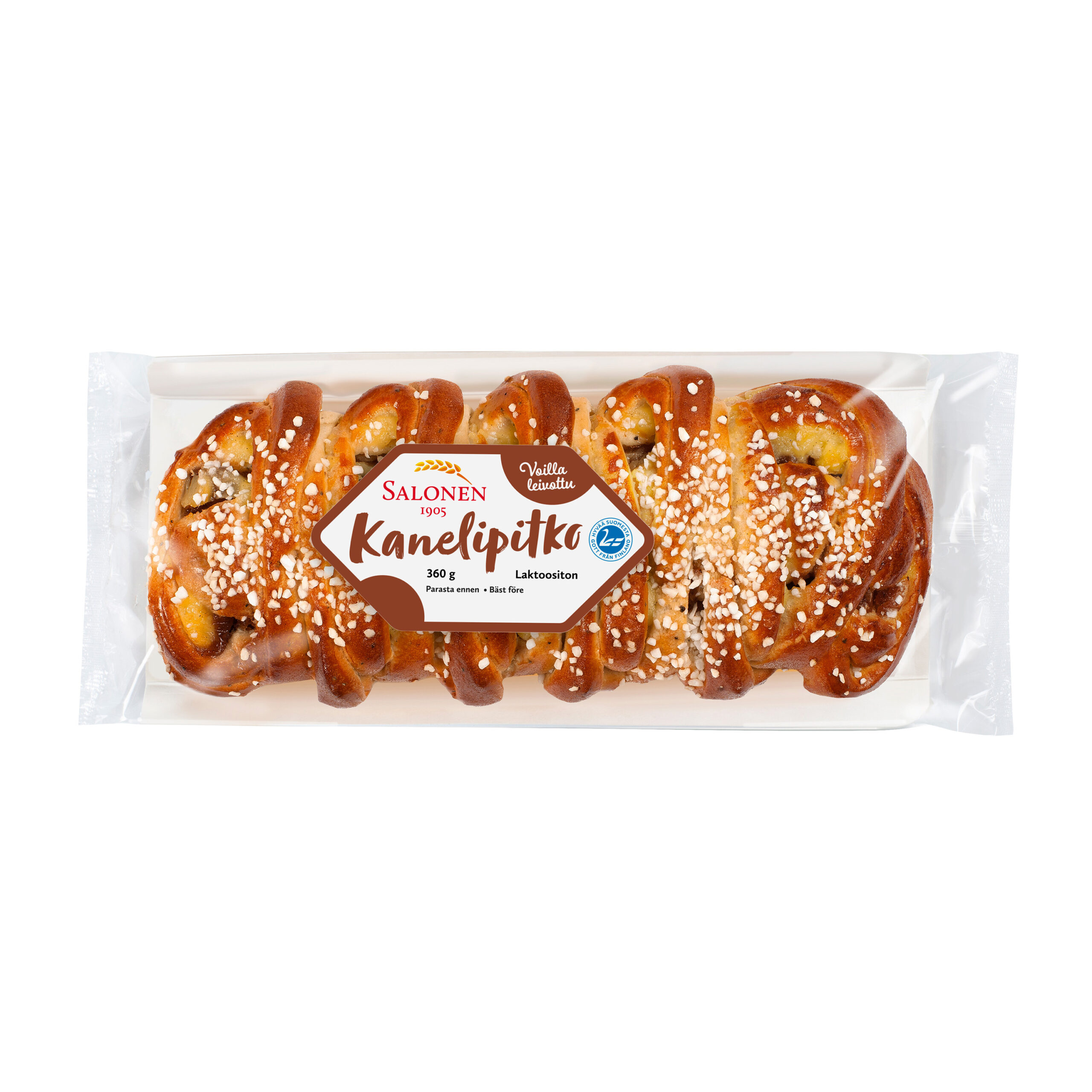 Kanelipitko on voilla leivottu laktoositon pullapitko, joka sisältää runsaasti herkullista kaneli-vaniljatäytettä.