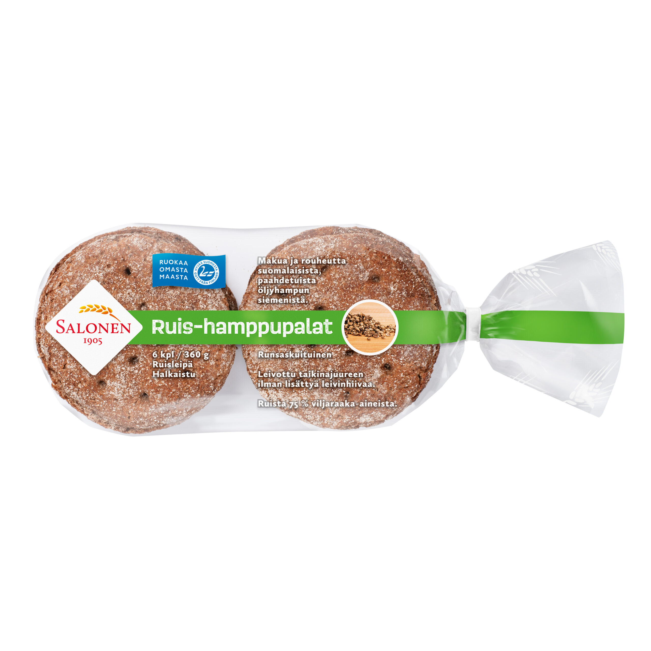 Ruis-hamppupalat on maustettu paahdetuilla öljyhampun siemenillä, jotka tuovat leipään rouskuvaa purutuntumaa. Runsaskuituiset Ruis-hamppupalat leivotaan Juuresta leiväksi -konseptin mukaisesti taikinajuureen ilman lisättyä leivinhiivaa.